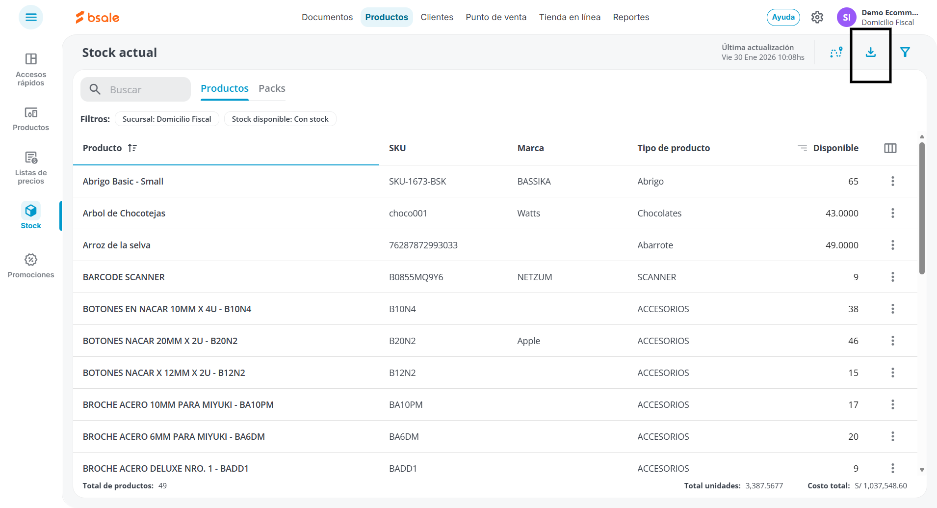 1. Descargar el reporte de stock actual.