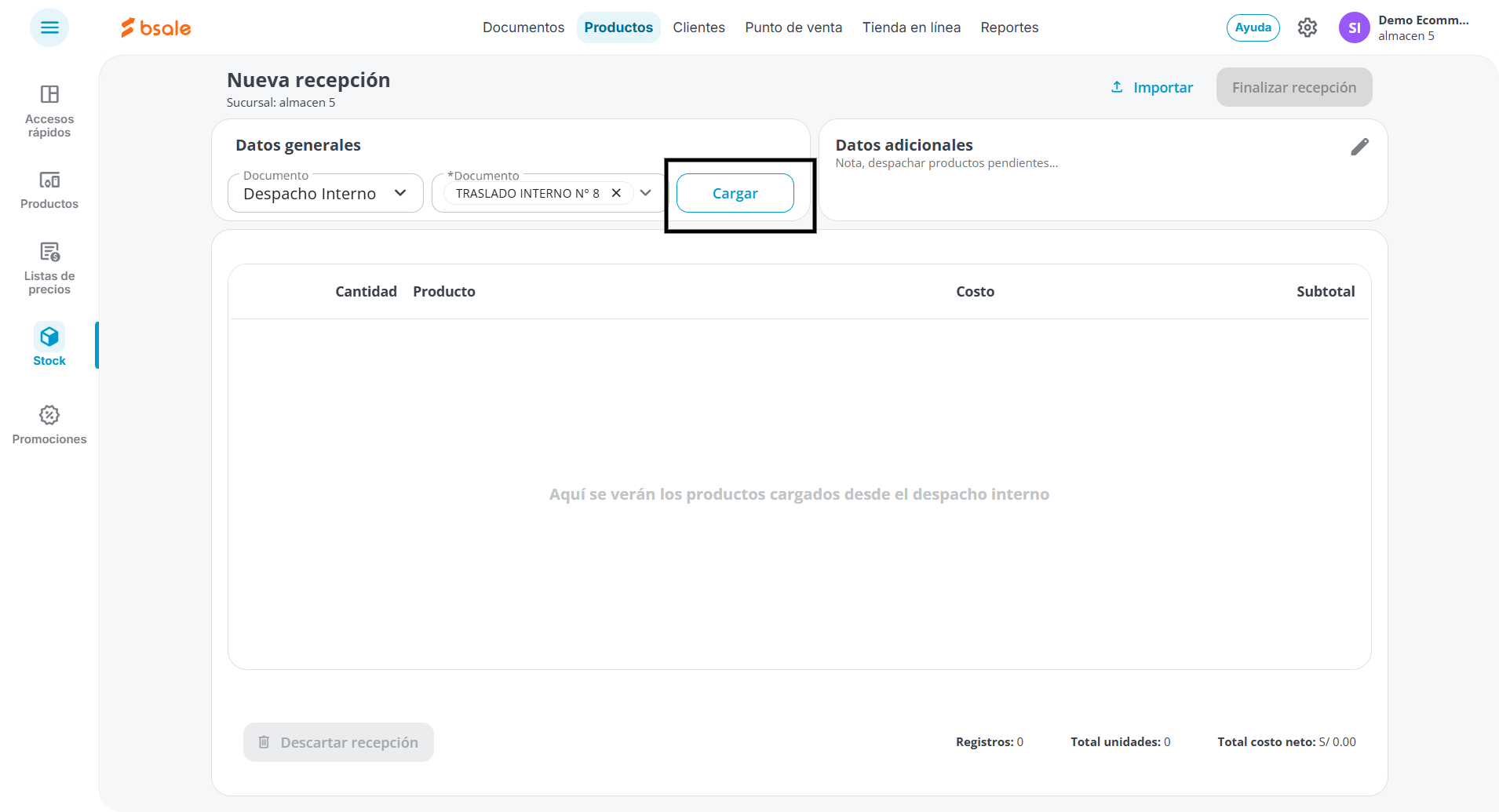 4. Recepcionar stock desde una guía de despacho