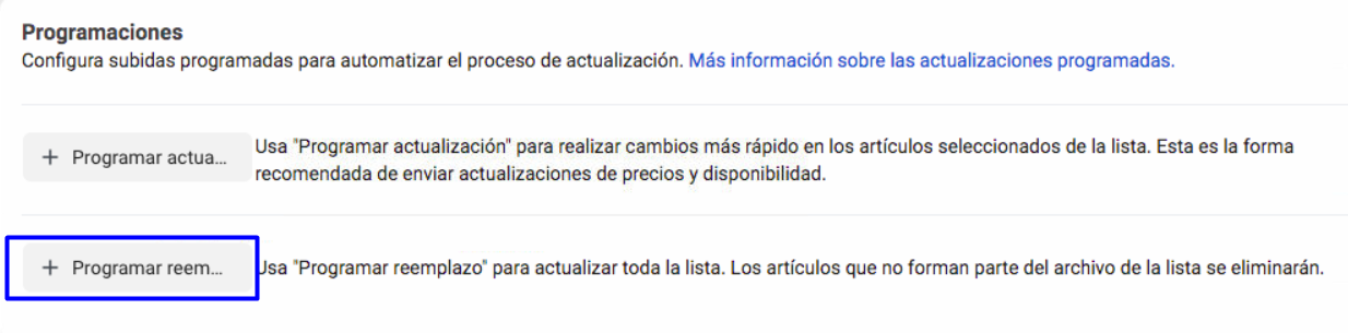 En la sección de Programaciones selecciona la segunda opción Programar Reemplazo en la configuración debes dejar los parámetros como se detallan a continuación: