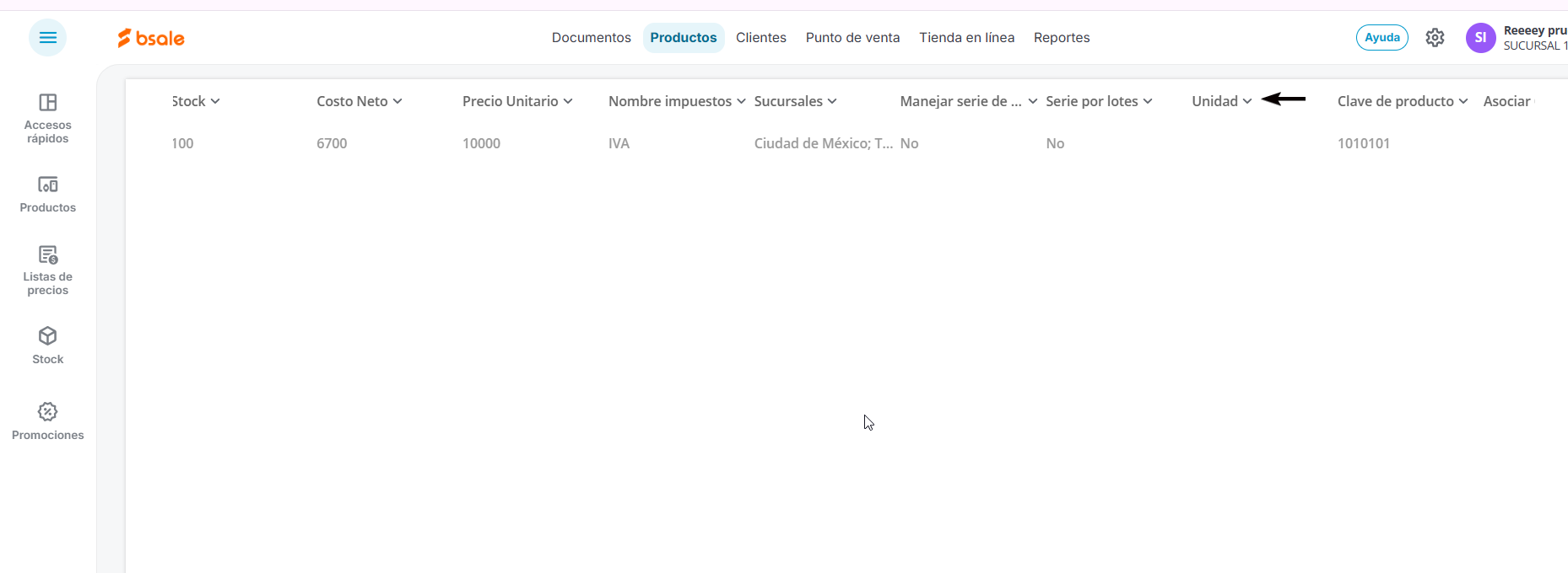 2. Agrega el código de unidad de medida en la carga masiva de productos