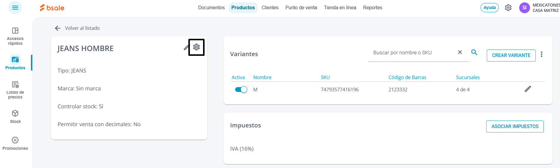 Presiona en el engranaje que está al lado del nombre del producto y se abrirá una ventana lateral donde podrás hacer los cambios que necesites.
