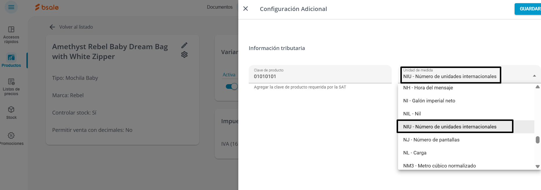 Si necesitas modificar la unidad de medida de un producto en específico, puedes hacerlo ingresando en: Productos y luego en Mis Productos y servicios.