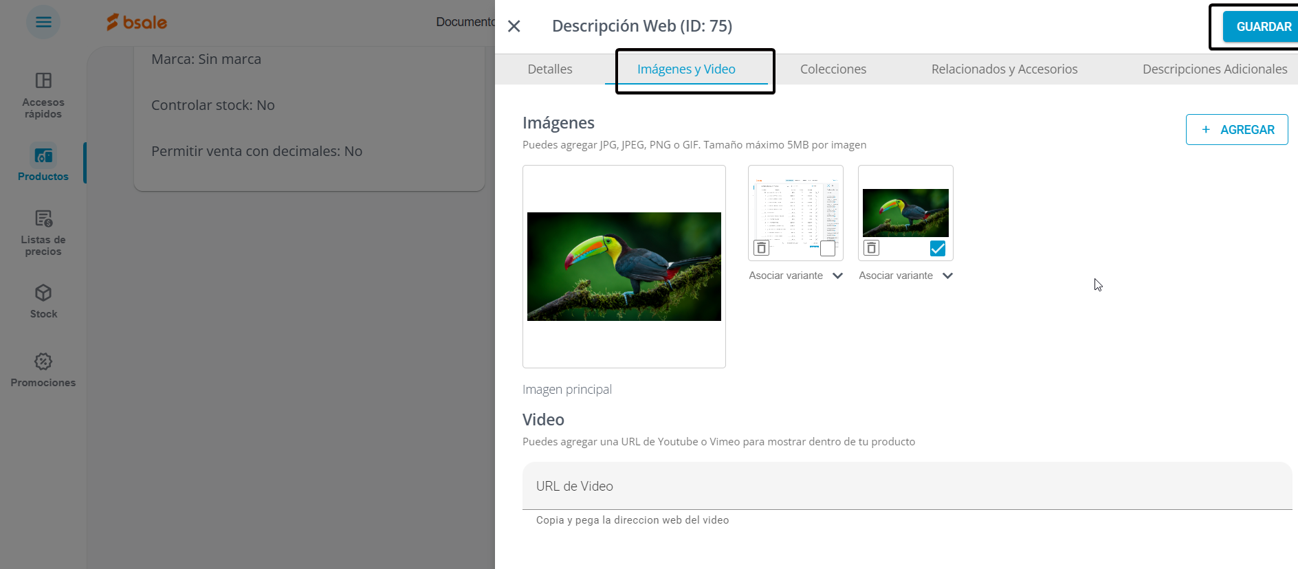 3. Idealmente, carga una imagen a la descripción web. Esta imagen debe ser en formato JPG. Imágenes en PNG no son aceptadas por Mercado Libre mediante esta integración.
