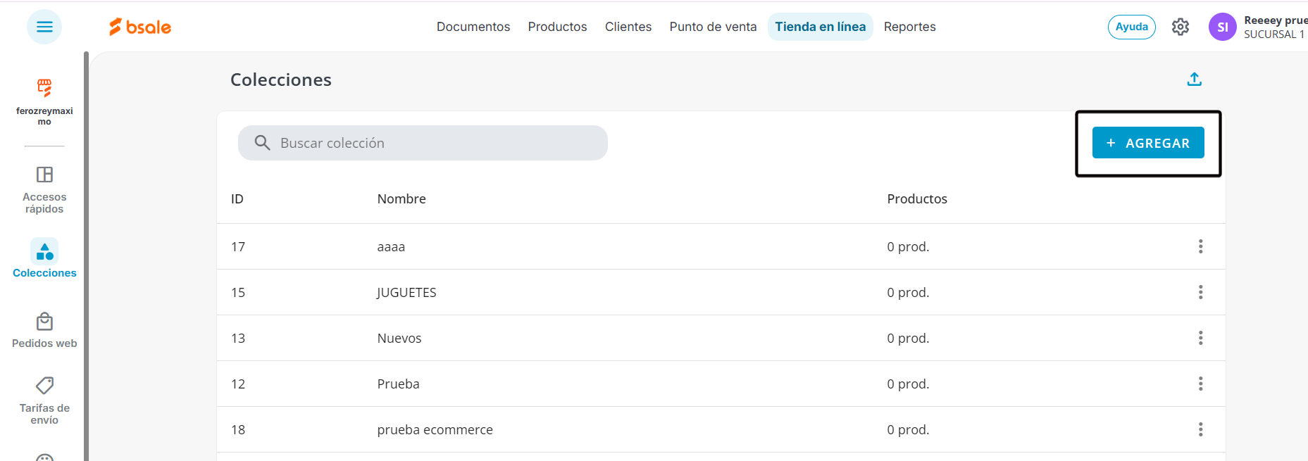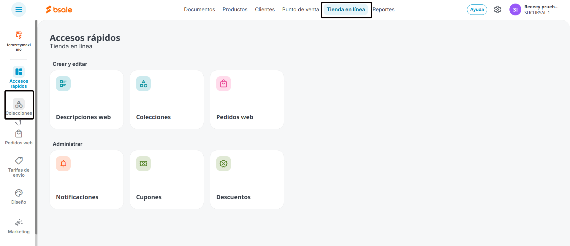 4. Desde Tienda en Línea haz clic y luego en Colecciones.