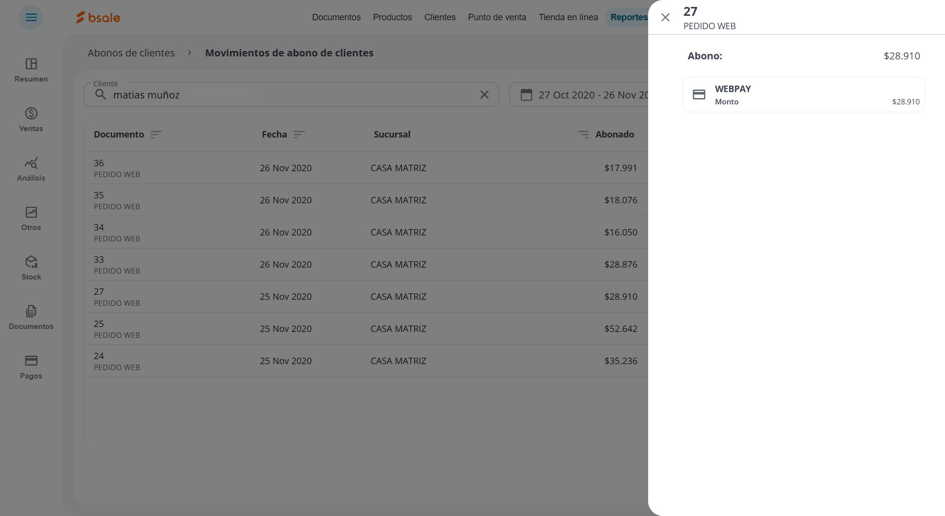 3. Ver movimientos de abono de un cliente