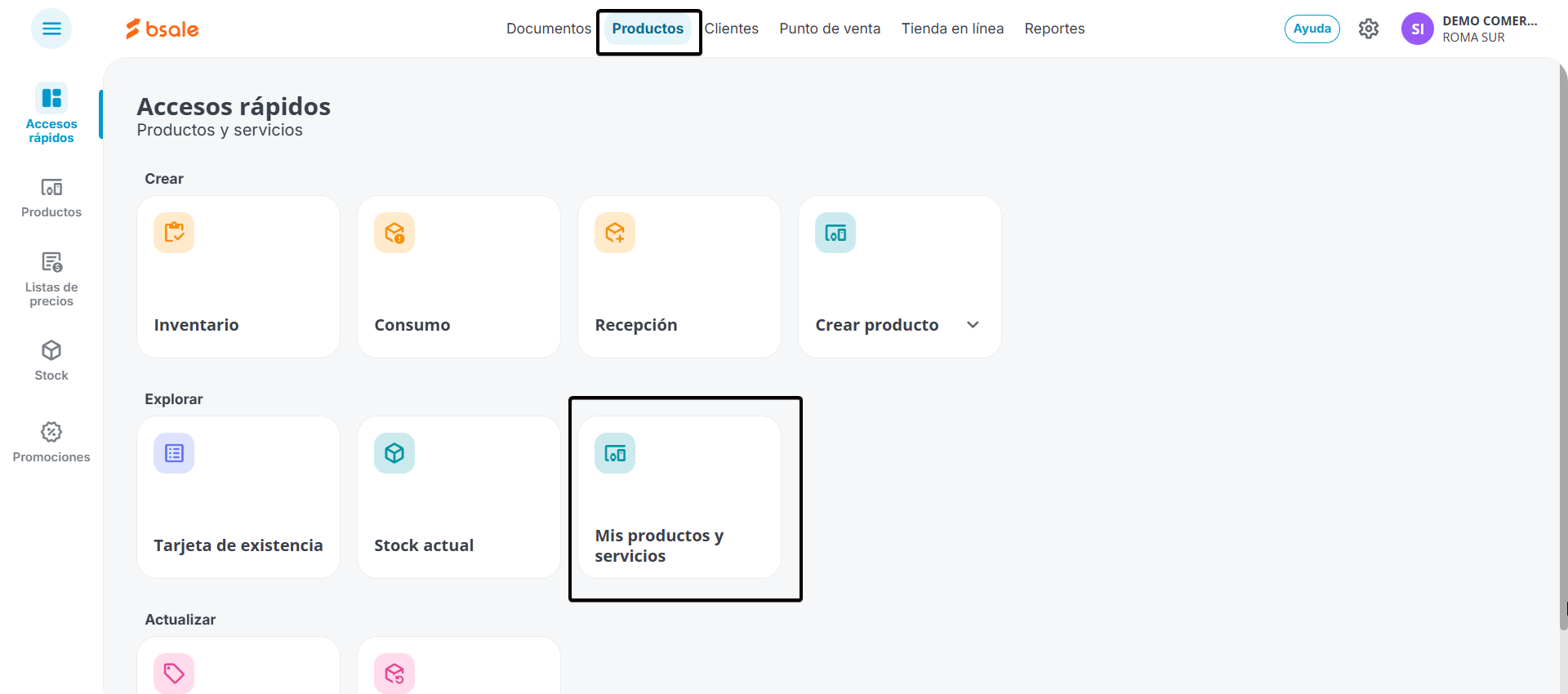 Para acceder al listado de productos, debes ingresar al engrane ubicado arriba a la derecha y después a productos y servicios. En esta sección podrás visualizar todos los productos o servicios que vendes en tu empresa. Selecciona el producto que deseas editar.
