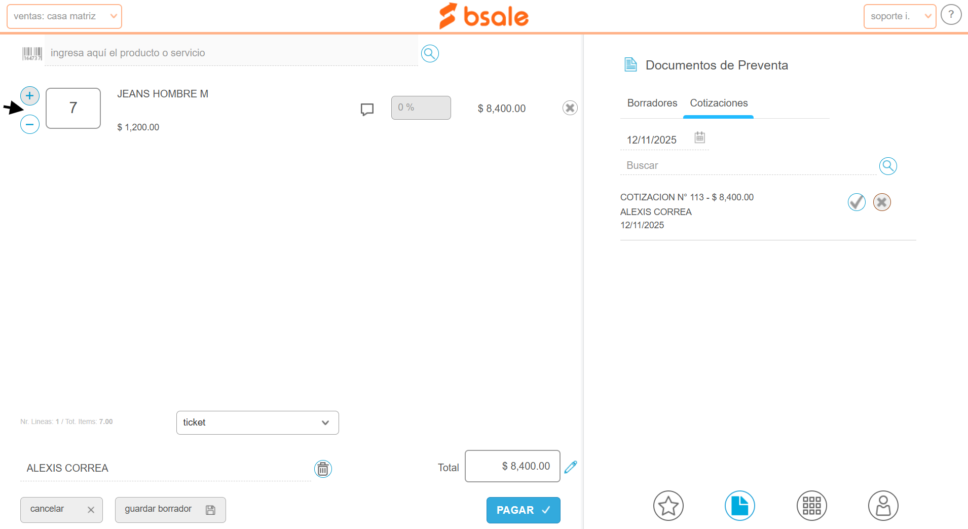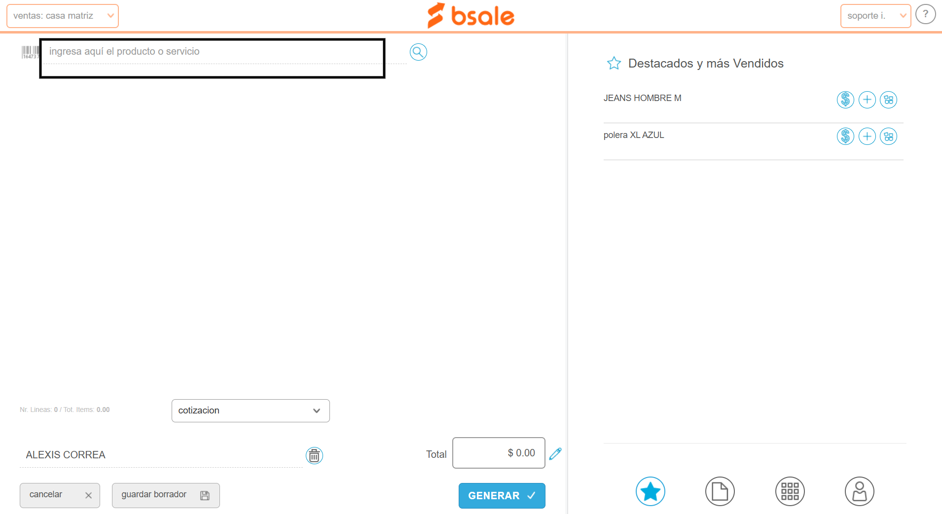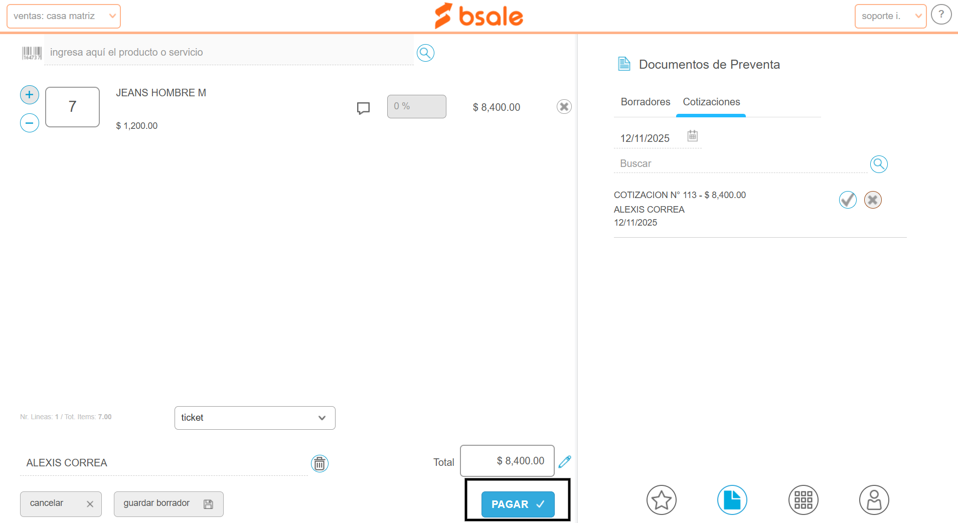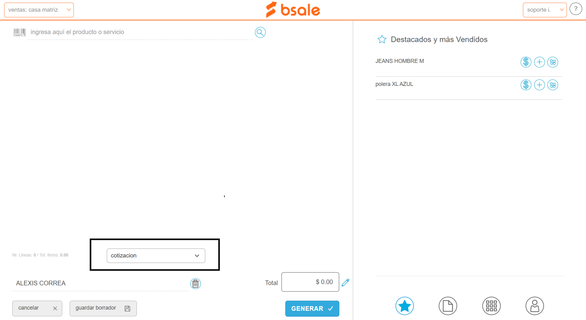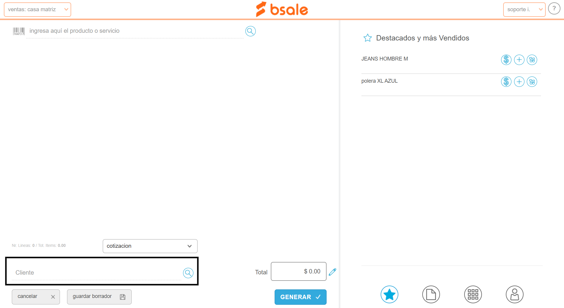 Nota: esta funcionalidad se encuentra en modo Beta, por lo que puede que aún no lo tengas disponible o no funcione correctamente.En este manual te enseñamos cómo generar un documento de preventa como una cotización o una nota de venta por el punto de venta (POS).Esta funcionalidad está disponible para la versión de escritorio y para la APP Bsale.