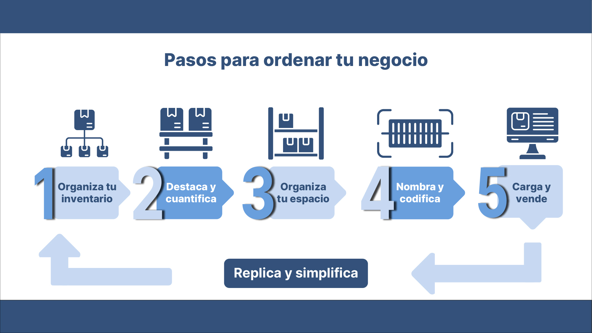 Nota: Recuerda que este proceso es un ciclo continuo. Siempre puedes "Replicar y simplificar" estos pasos a medida que incorpores nuevos productos para mantener tu operación siempre optimizada.