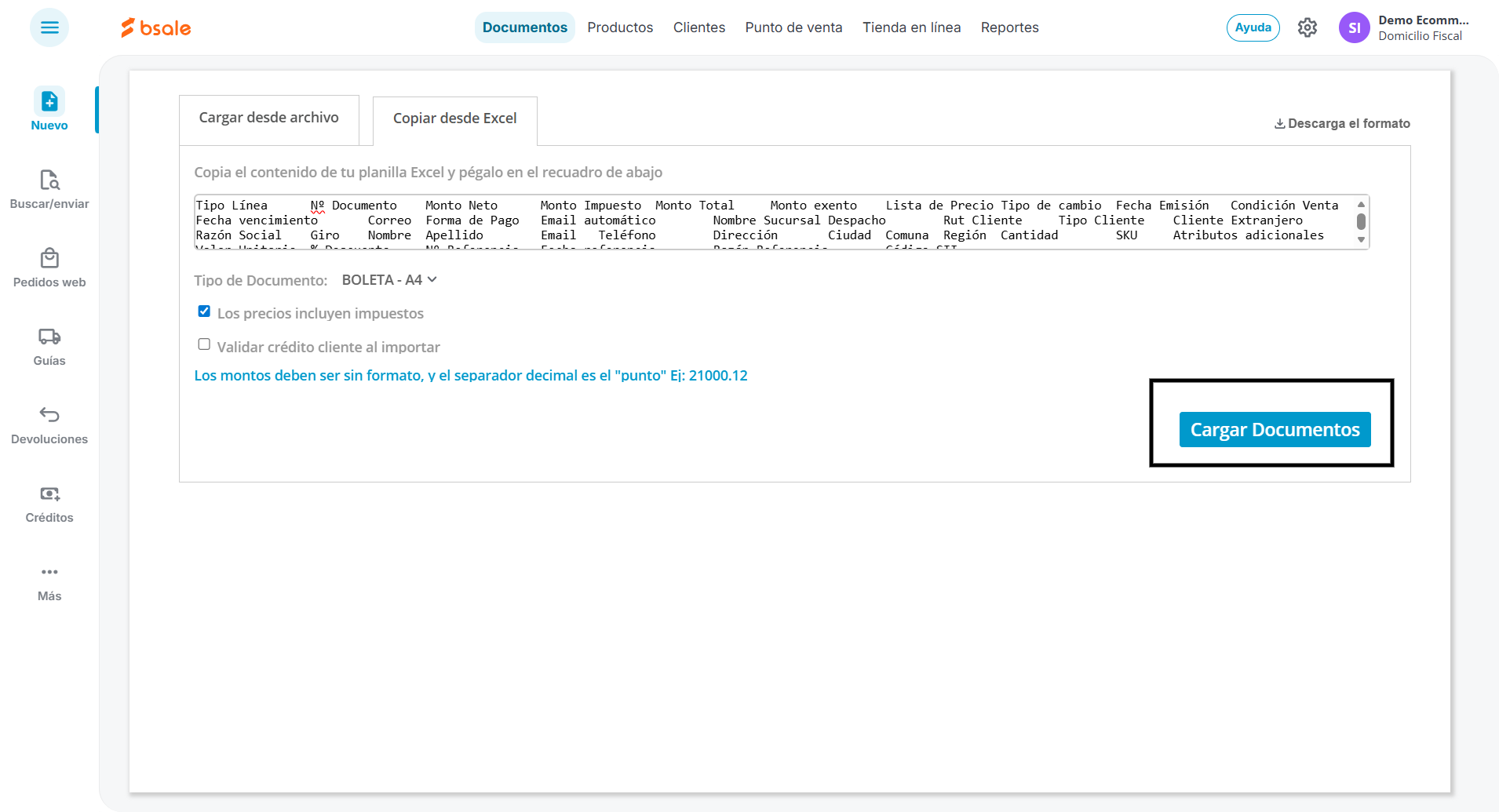 4. Cargar e importar los documentos en Bsale